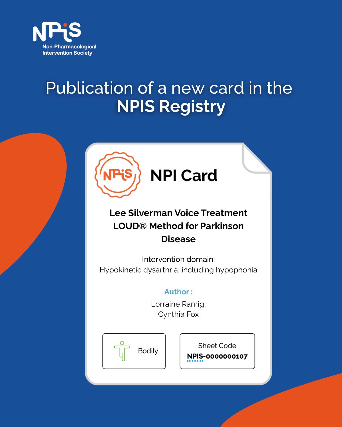Compte tenu que les INM sont des protocoles universels de santé centrés sur la personne et administrés par des humains, une société savante multidisciplinaire internationale devait être créée, c’est chose faite depuis 2021. Cette société s’intitule la Non-Pharmacological Intervention Society (NPIS). -